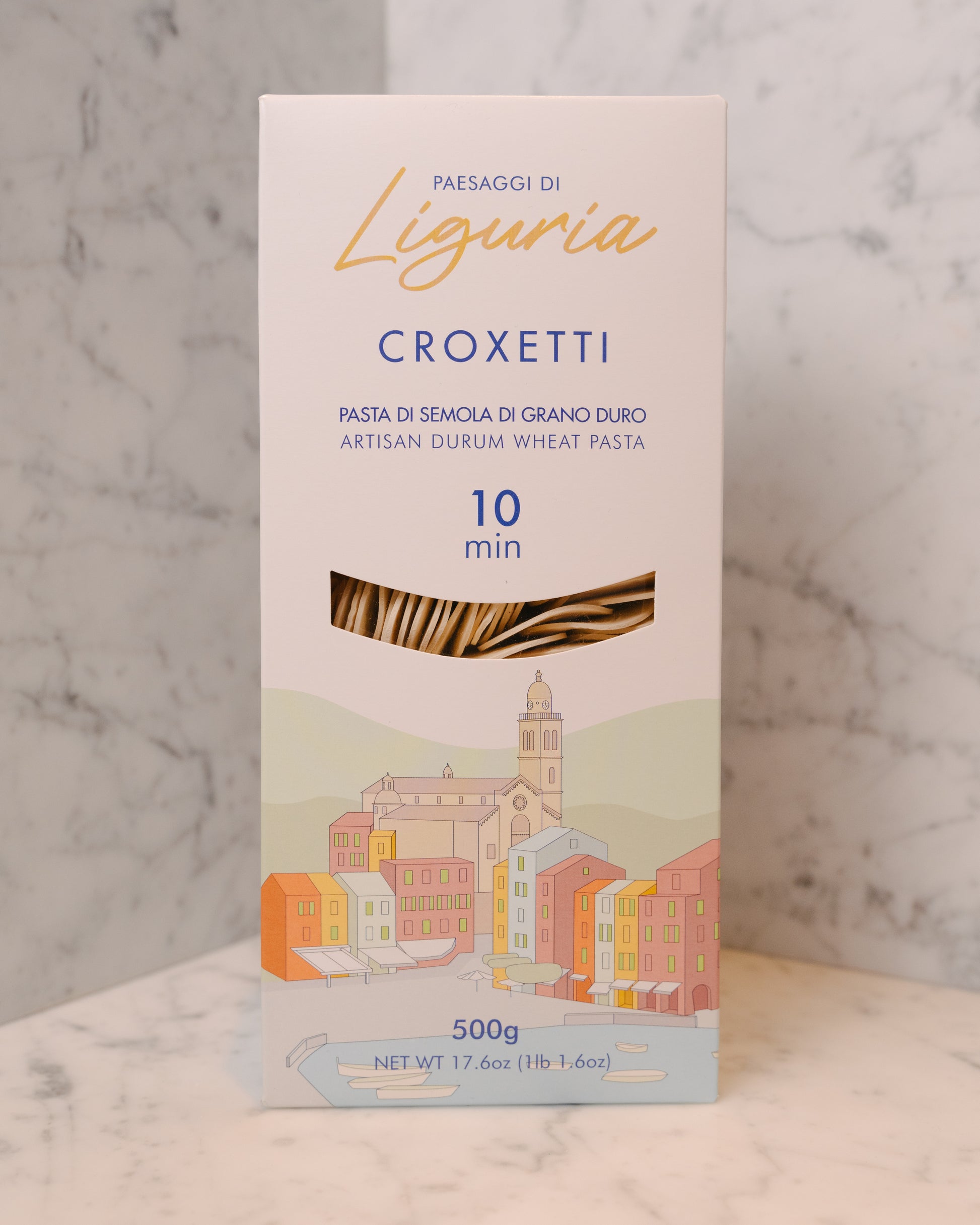 Durum wheat semolina pasta produced in Liguria with wheat grown and milled in Italy.